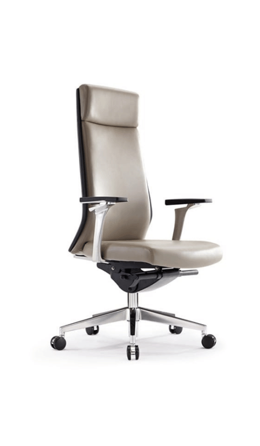 Fauteuil président ergonomique au design contemporain, revêtu d’un simili-cuir taupe doux et résistant, avec assise et dossier généreux pour un confort soutenu. Structure élégante en métal chromé et base étoilée en aluminium brossé, accoudoirs fixes au fini noir mat, roulettes silencieuses pour une mobilité fluide. Un équilibre subtil entre sobriété, robustesse et raffinement, pensé pour les espaces de travail modernes — du bureau professionnel au home office exigeant.
