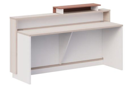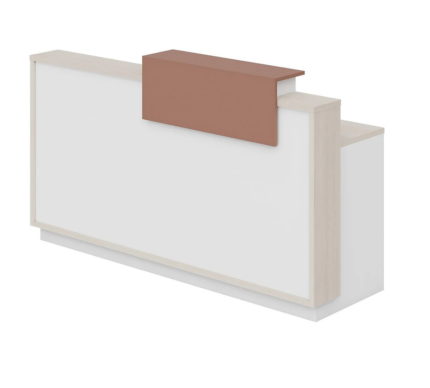Comptoir d’accueil rectangulaire au design moderne et fonctionnel, en blanc mat et bois clair, avec un plateau surélevé intégré pour une interaction optimale. Sa structure épurée, ses angles doux et son espace de rangement ouvert sous le plateau allient praticité et esthétique contemporaine. Idéal pour les espaces professionnels qui cherchent à créer une première impression claire, accueillante et organisée — où simplicité, luminosité et efficacité se rencontrent.