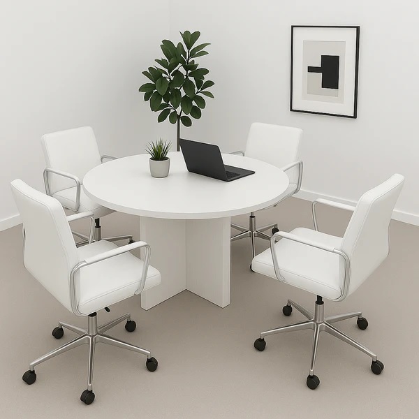 Table de réunion en forme ronde pour 4 personnes ou moins avec un plateau et pieds en bois MDF épaisseur 25mm .