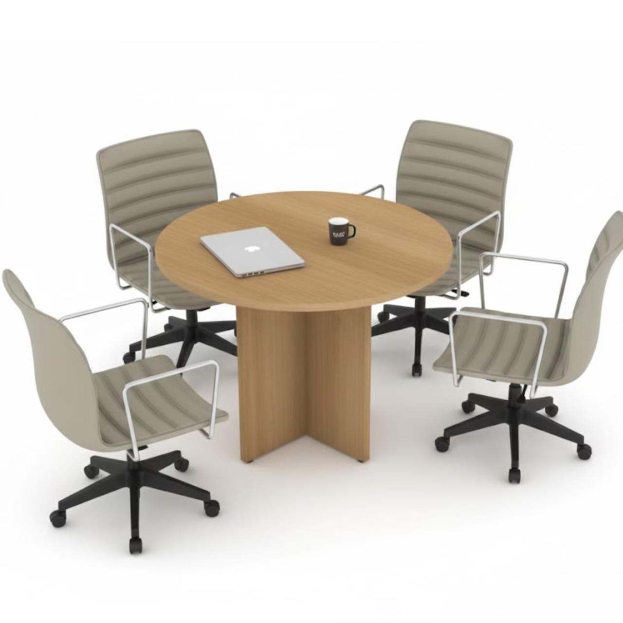 Table de réunion en forme ronde pour 4 personnes ou moins avec un plateau et pieds en bois MDF épaisseur 25mm .